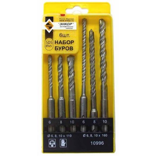 Набор буров SDS+ 6;8;10Х110 мм, 6;8;10Х160 мм, 6 штук, пластиковый футляр