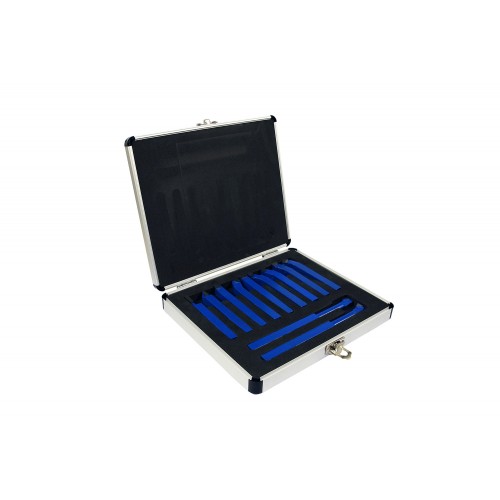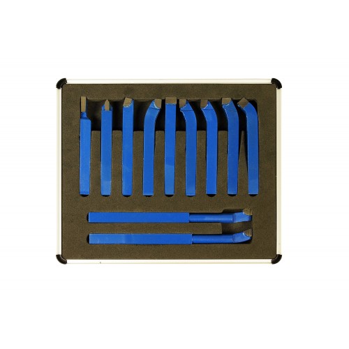 Набор резцов для токарных станков с напаянной пластиной из твердого сплава, сечение10х10 мм, количество резцов в наборе 11 штук.