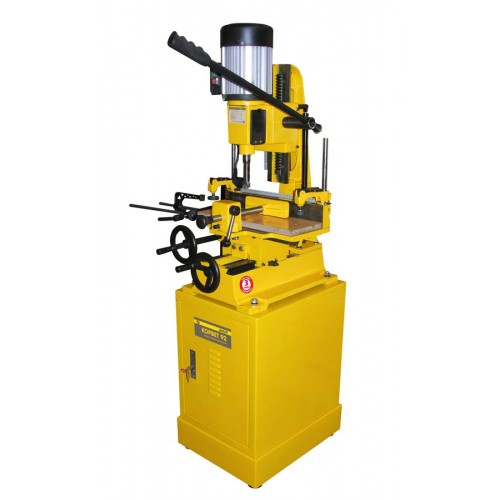 Деревообрабатывающий сверлильно-долбежный станок «Корвет-92» предназначен для выборки в изделиях из древесины отверстий, гнезд, пазов и шипов прямоугольной формы. Этот станок незаменим при изготовлении пазо-шиповых соединений. Вырубка отверстий осуществляется насадкой пазовальной, состоящей из спирального сверла и долота квадратного сечения.
