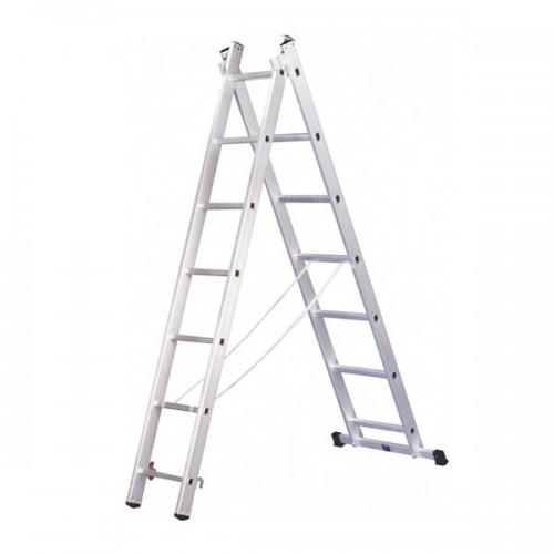 Лестница 2-секционная из алюминиевого профиля. Может использоваться как обычная раздвижная лестница или как стремянка, что позволяет расширить спектр строительных и хозяйственных работ дома или на даче. Максимальная нагрузка на лестницу - 150 кг.