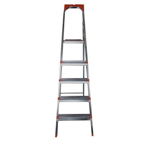 Бытовая стремянка металлическая оцинкованная с пластмассовой верхней полкой для инструментов. Стремянка рассчитана на нагрузку до 150 кг, удобна в быту и строительстве.