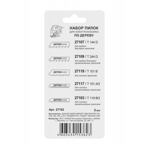 | Состав набора | Артикулы пилок |