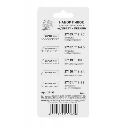 Состав набора Артикулы пилок