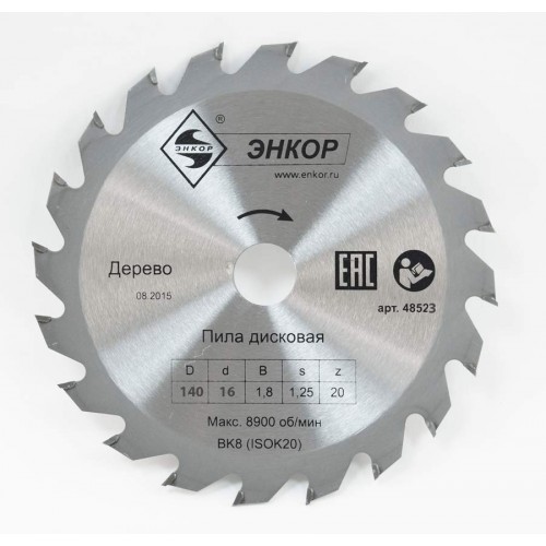 Диск пильный по дереву ф140х16 z20