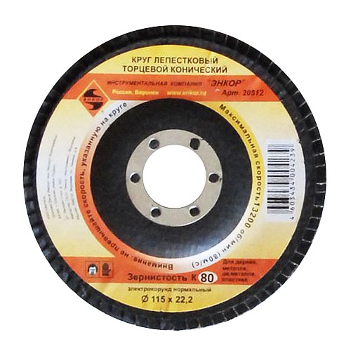 Круг лепестковый Ф115Х22,2 мм, К80, торцевой конический