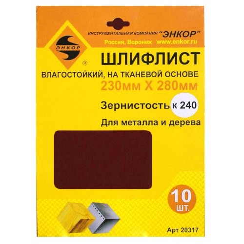 Шлифлисты 230Х280 мм, К240, на тканевой основе, 10 штук, водостойкий