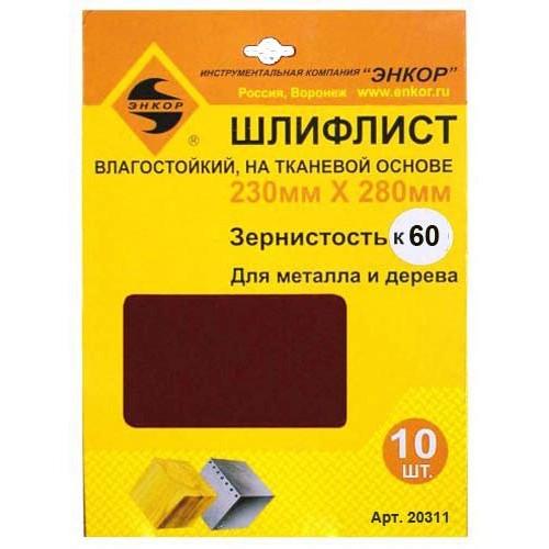 Шлифлисты 230Х280 мм, К60, на тканевой основе, 10 штук, водостойкий