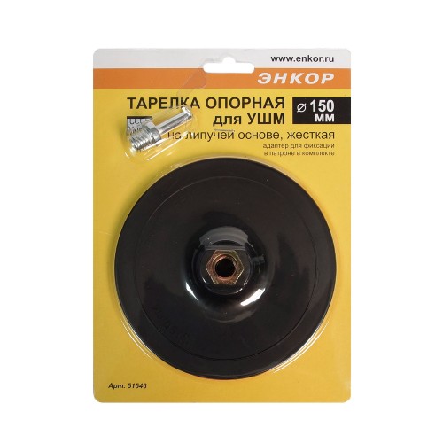 Тарелка опорная Ф 150 мм, М14, для УШМ, липучая основа, жесткая, + адаптер