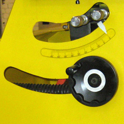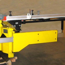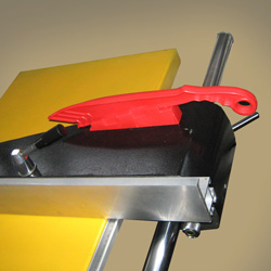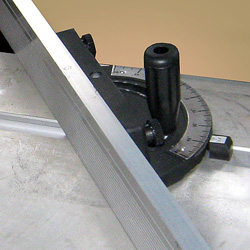 | Параллельный упор перемещается по жесткой цилиндрической направляющей с возможностью точной регулировки. | Дополнительная линейка для угловых резов на каретке позволяет производить угловые резы без перенастройки основного фронтального упора | Удобная регулировка наклона и вылета дисков. | ||