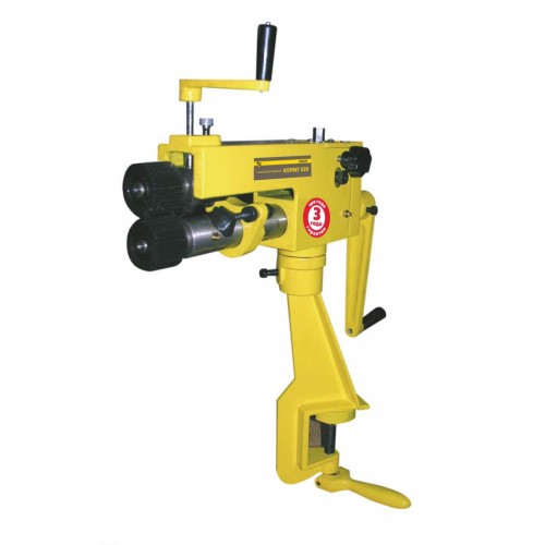 Кромкогибочный станок «Корвет 520» предназначен для отбортовки, гибки, кручения, разглаживания кромки изделия, а также резки листа. Для крепления станка к столу или верстаку имеется струбцина. Станок имеет компактную конструкцию. Для возможности работать с листами различной толщины и регулировки силы прижима расстояние между вальцами регулируется. Большой вылет вальцев расширяет функциональность станка. Предусмотрен упор для заготовки. Для получения различных профилей имеется комплект сменных вальцев.