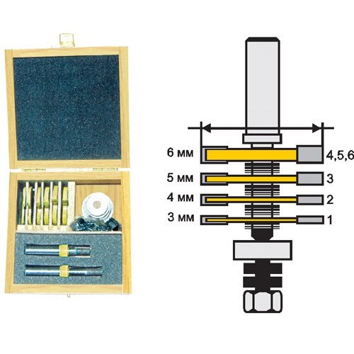 Для получения пазов различной ширины можно пользоваться таблицей для набора фрез арт. 46340.