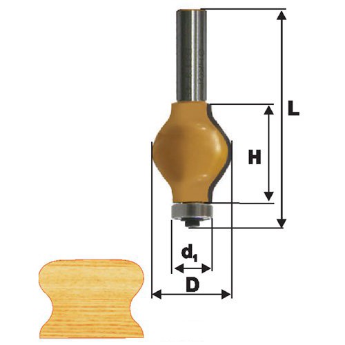 Фреза кромочная фигурная Ф32Х38 мм, хвостовик 12 мм
