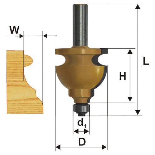 Фреза кромочная фигурная Ф44,5Х28,6 мм, хвостовик 12 мм