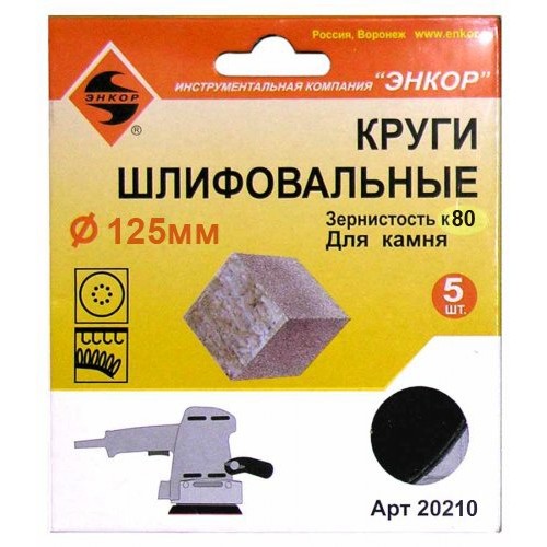 Шлифкруги Ф125 мм, К100, на липучей основе с отверстиями, 5 штук, для камня