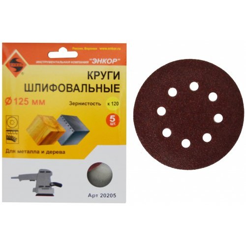 Шлифкруги Ф125 мм, К120, на липучей основе с отверстиями, 5 штук, для дерева и металла