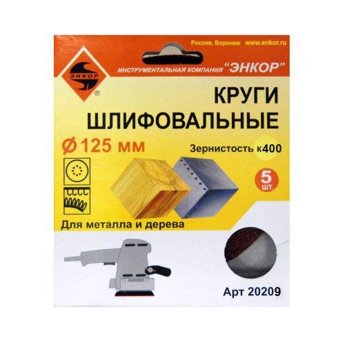 Шлифкруги Ф125 мм, К400, на липучей основе с отверстиями, 5 штук, для дерева и металла