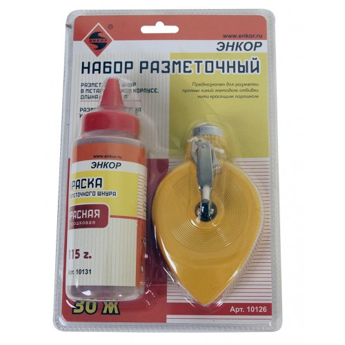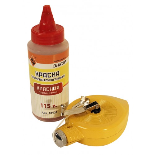 Для нанесения прямолинейной разметки на поверхностях стен, потолка или пола, методом отбивки с красящим порошком. Прочный хлопковый шнур длинной 30 метров. Крючок для закрепления начальной точки. Шнур помещен в прочный металлический корпус. Удобная рукоятка для разматывания (наматывания) нити. В комплект входят шнур разметочный и красная краска для разметочного шнура 115 г.