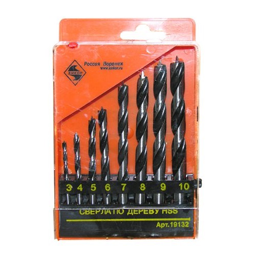 Набор сверл для дерева спиральных Ф3,4,5,6,7,8,9,10 мм,8 штук, пластиковый кейс