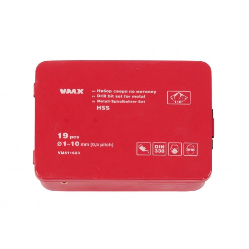 Набор сверл для металла HSS Ф1-10 мм, шаг 0,5 мм, 19 штук, металлический футляр