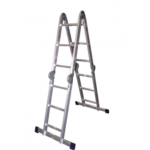 Лестницы четырёхсекционные (трансформеры, как их еще называют) – это особые специальные лестницы алюминиевые, которые могут использоваться и как приставные лестницы, и как стремянки, и даже как приставной удобный помост различной высоты.При этом любая лестница трансформер универсальная в сложенном состоянии очень компактна и свободно помещается, к примеру, в багажник легкового автомобиля. Компактность и функциональность этих лестниц обеспечили им самое широкое признание не только в России, но и за рубежом. Все это благодаря тому, что каждая лестница универсальная имеет на стойках специальные шарниры, позволяющие складывать и раскладывать ее, придавая максимально удобное положение для работы. Традиционно пользуется большой популярностью благодаря компактности, многофункциональности, а также безопасности использования. Лестница трансформер находит широкое применение и популярность как в связанных со строительством и производством областях, так и во вполне бытовом хозяйстве. Лестницы-трансформер универсальные обладают набором качеств, которые делают их и в самом деле уникальными.    Изготовление этих лестниц из алюминия и алюминиевых сплавов обеспечивает конструкции подобных лестниц стремянок необходимую легкость.