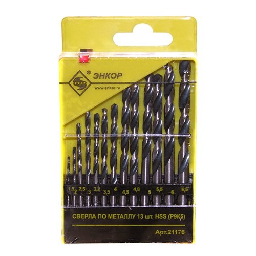 Набор сверл для металла HSS Ф1,5-6,5 мм, 13 штук, пластиковый футляр