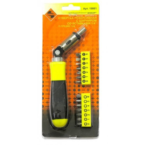 Отвертка реверсивная шарнирная со вставками 1/4", 15 предметов