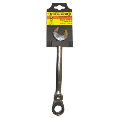 Ключ гаечный комбинированный 19х19, с шарниром и трещоткой