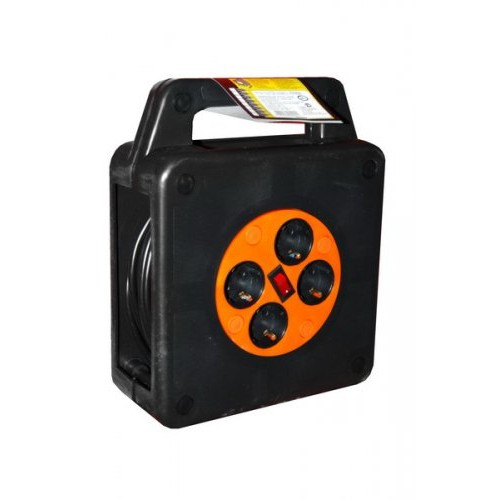 Удлинитель электрический силовой на катушке-чемодане с четырьмя розетками. Удлинитель предназначен для использования в условиях гаража, садового участка, строительной площадки, на производстве, при выполнении ремонтных и монтажных работ. Корпус изготовлен из ударопрочного материала. Наличие 4 розеток позволяет одновременно использовать несколько электроприборов.