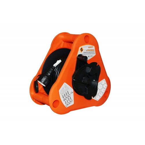 Силовой удлинитель на катушке, подходит для использования как в помещении, так и на улице. Основание силового удлинителя имеет форму правильного треугольника - любая сторона имеет одинаковую устойчивость и может служить надёжной опорой даже на неровной поверхности. Плоские грани добавляют удобство при использовании в различных положениях.Конструкция катушки исключает неравномерную нагрузку, это обеспечивает равномерность намотки и не приводит к деформации осевых элементов при намотке длинного провода. Данный удлинитель на катушке с одной выносной розеткой применяется для работы с газонокосилкой, электропилами и т.д, там где необходимо движение при работе. В момент выполнения работ нет необходимости носить с собой саму катушку - просто разматывается кабель.