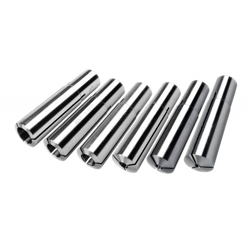 В комплект входят цанги, предназначенные крепления концевых фрез и установки на станки фрезерные по металлу Корвет 407, 413, 414, 415, 416, 417, 418. Цанги имеют конус МТ3. Комплект состоит из 7 цанг, предназначенных для крепления фрез с диаметром хвостовика 4, 6, 8, 10, 12, 14, 16 мм.