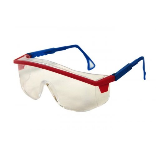 Универсальные очки с регулируемым углом наклона защитного панорамного стекла и регулируемой длиной заушников, Панорамное стекло из оптически прозрачного материала Plexiglas CE обеспечивает защиту от воздействия твердых частиц с кинетической энергией до 3,0 Дж, УФ-излучения до l= 350 нм. Твердый слой защитного стекла устойчив к истиранию и царапанию. Масса не более 35