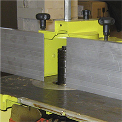 | Направляющая планка при строгании устанавливается под 90 и 45 град | На строгальный вал устанавливается 3 ножа | Пазовальный узел перемещается по трем осям с регулировкой длины хода | ||