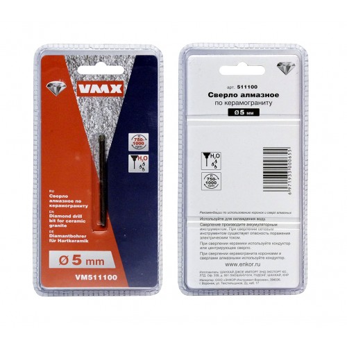 Cверло алмазное по керамограниту ф 5 мм мокр. рез